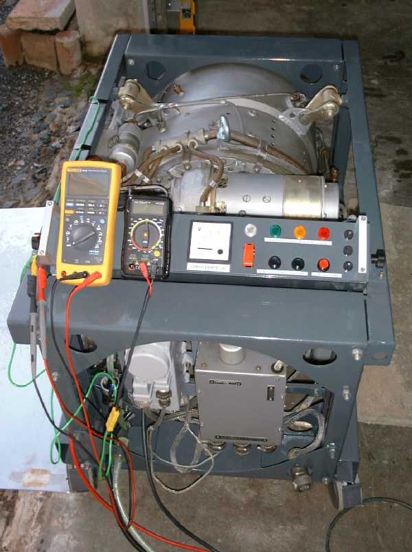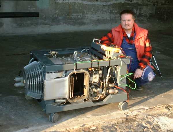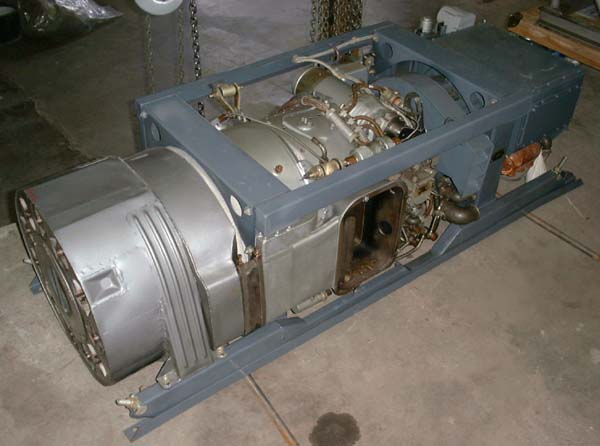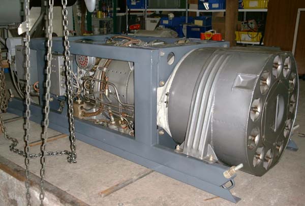Turboshaft engine 2PW8 08/16/2003 Once again a relatively small turbine engine of Russian origin, the 2PW8 provided the mechanical power in a 75kW genset. I spotted this particular unit on German eBay about a week ago. The starting bid was quite high but in my opinion not completely beyond reason. Due to the size and weight of the unit, and since I’ve already got quite some similar toys, I decided to let this one go. Yet I told my friend Jürgen about it and he was immediately interested. I suggested to let the auction pass and see if anyone would place a bid - I expected noone would. In fact the auction ended without a bid and so I contacted the seller and did a little negotiating on a price that was still more reasonable to Jürgen. So this saturday we drove the 200km to the place the genset was located and picked it up. And now for some photos: