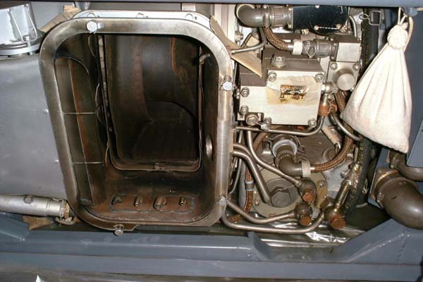 That’s a view on the left-hand side of the unit. The large can at the right is a dynamical dust/air separator. It probably serves as an intake silencer as well (who needs a silencer...?? ;-). There are more details on this part further below.