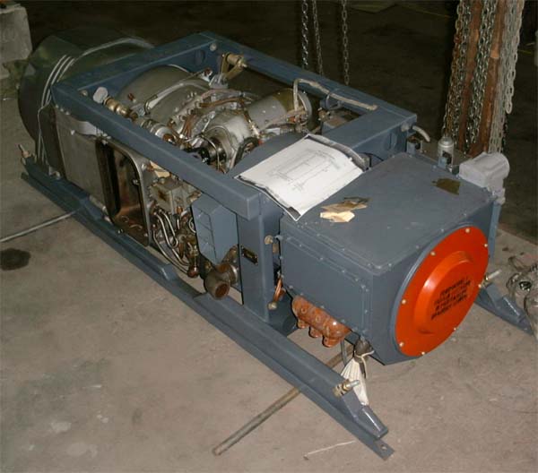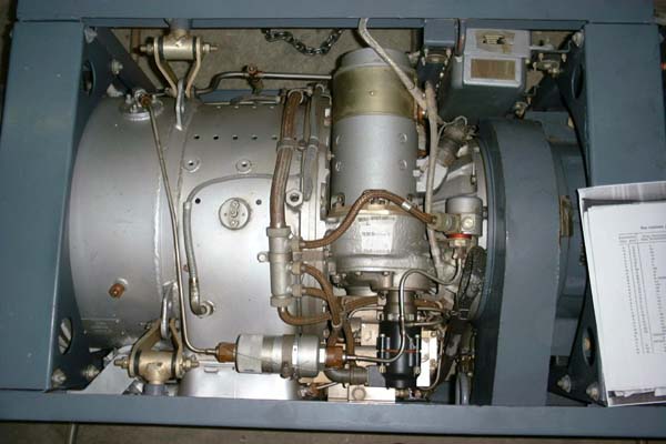 electro-mechaical startup sequencer and starter contactor (right) are located. Rated power output: 120hp (a little under-statement I guess) 100% rotor speed: 37,250 rpm Maximum continous EGT: 650°C Maximum intermittent EGT: 880°C Maximum time for startup: 120s Weight including accessories: 232kg Air mass flow: 1.8kg/s Compressor pressure ratio: 3.0 Specific fuel consumption: 750g/hphr (=approx. 1kg/kwh...efficiency?!?)